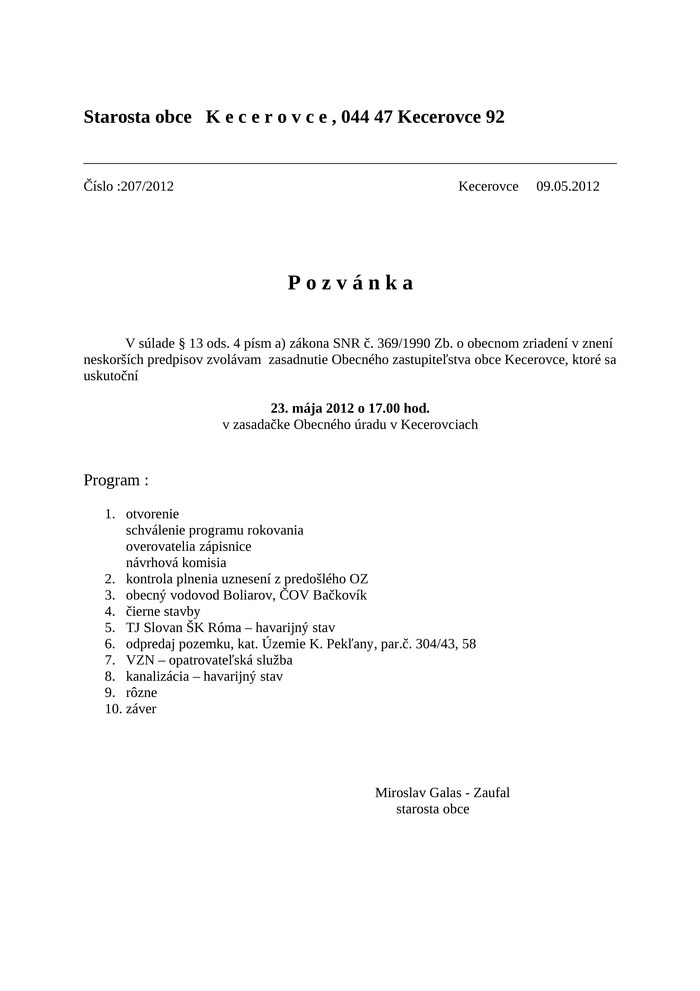 Obecné zastupiteľstvo 05/2012