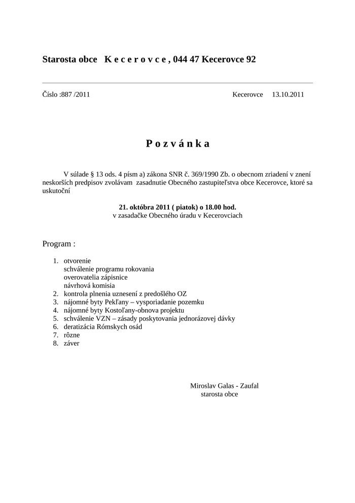 Pozvánka na zasadnutie obecného zastupiteľstva 10.12.2025